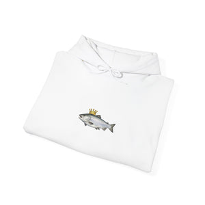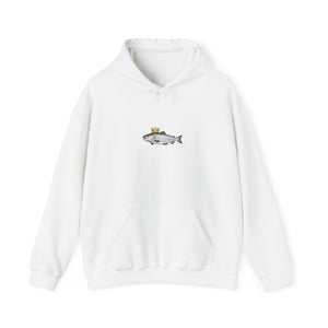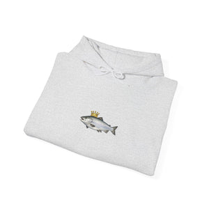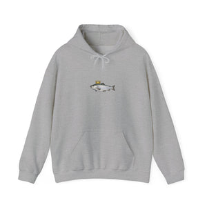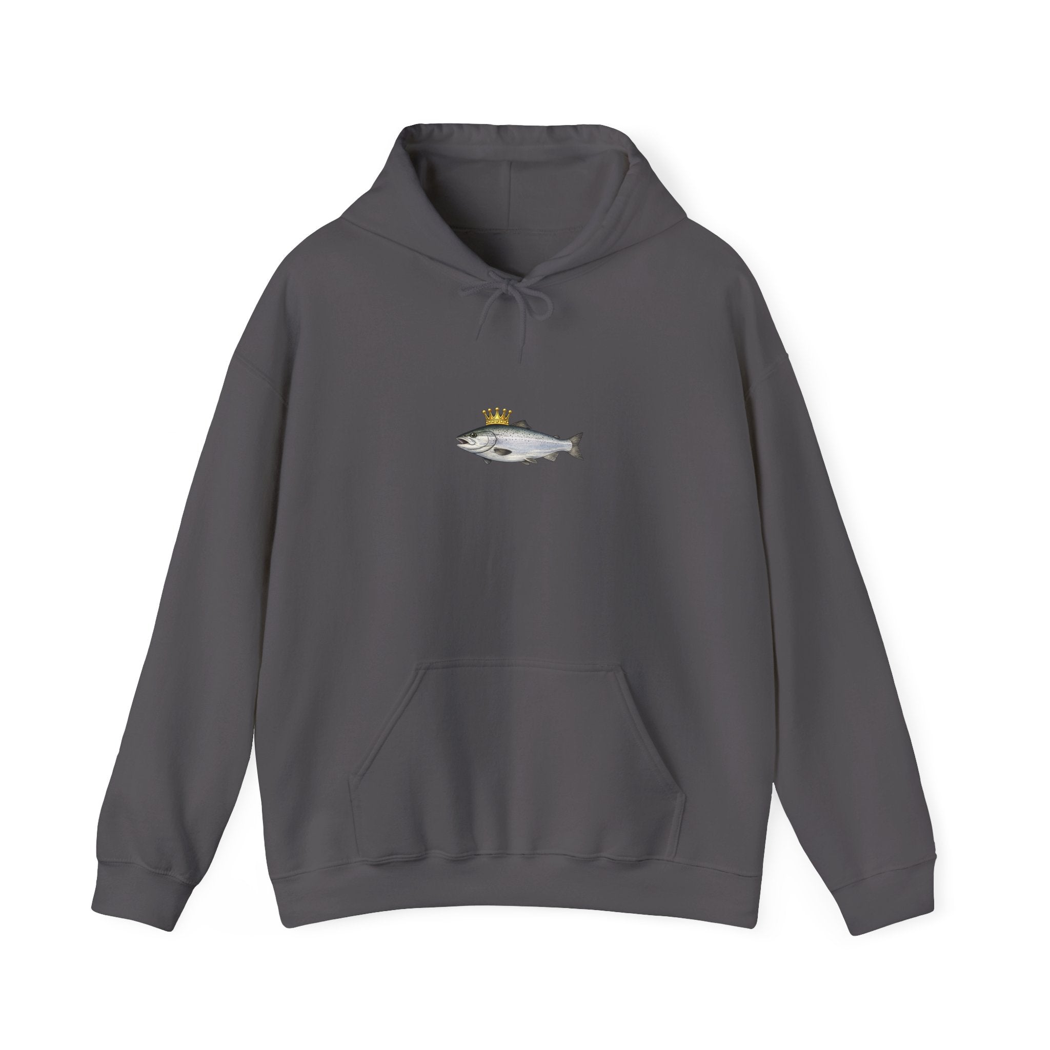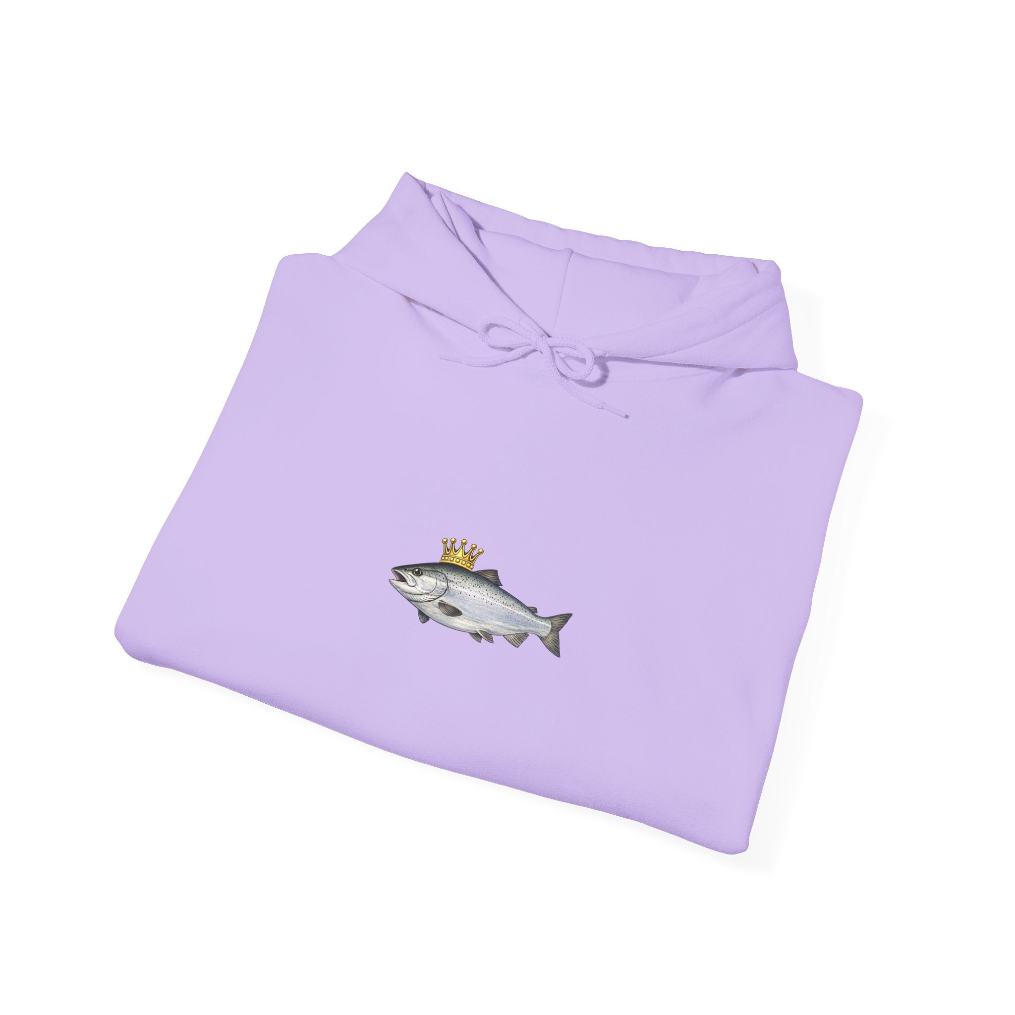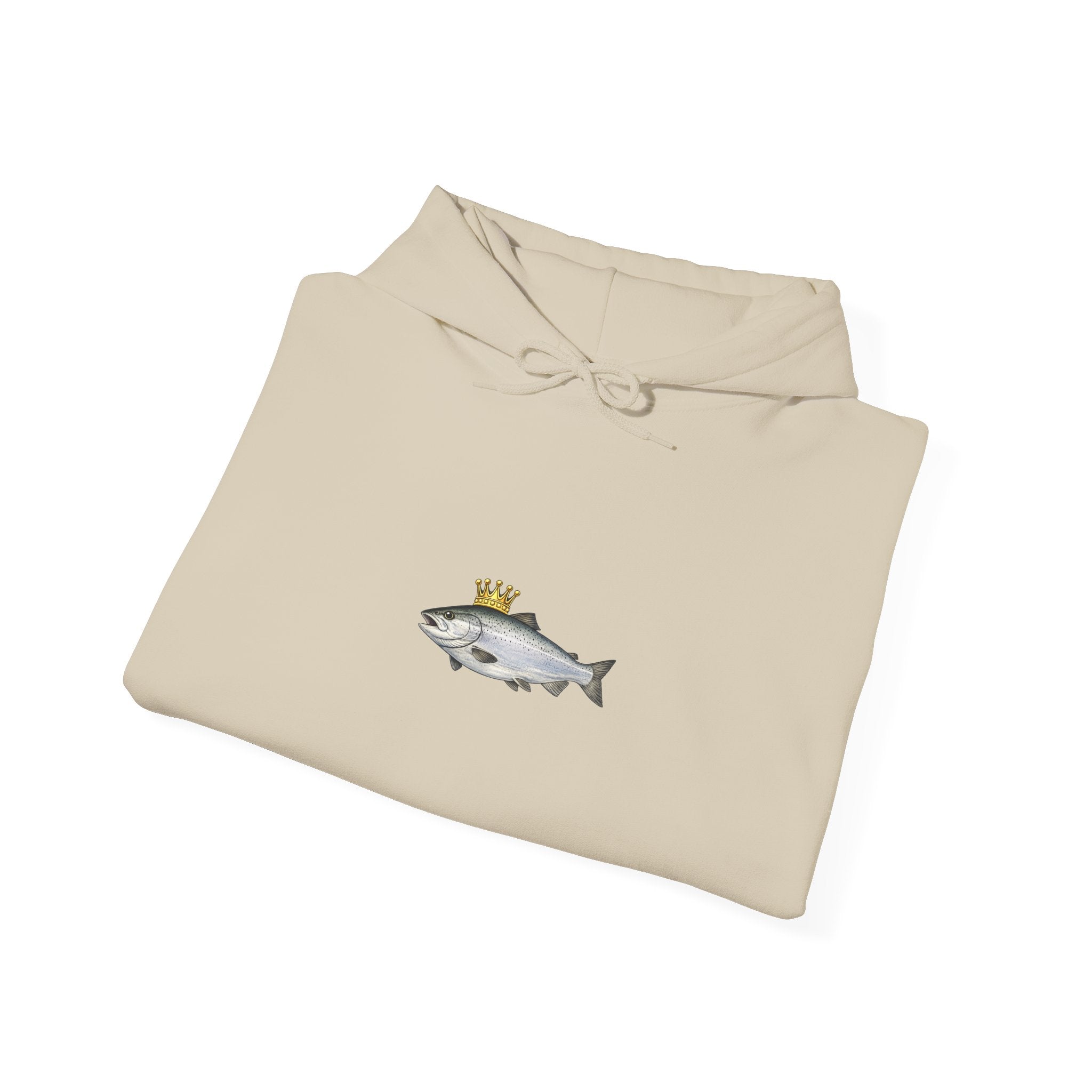 A cozy, thoughtfully made hoodie featuring a small, whimsical crowned fish motif centered on the chest. The medium‑heavy 50/50 cotton‑poly blend feels soft against skin while holding up to regular wear. The tubular knit construction reduces seams for a clean silhouette and better drape. A double‑lined hood with a color‑matched drawcord and roomy kangaroo pocket add everyday comfort. Subtle artwork keeps the look low‑key and versatile — wear it layered on crisp mornings, after a day on the water, or while unwinding at home. Quality details like tear‑away labels and optional DTF/embroidery placements make it easy to personalize or keep as a simple, durable staple in a relaxed wardrobe.